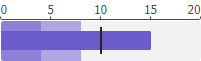 <chart type=bullet data=15,10,4,8>Define any number of qualitative scales by setting additional values. This example defines 2 which creates 3 (as the remaining empty area after the first two is the top range).