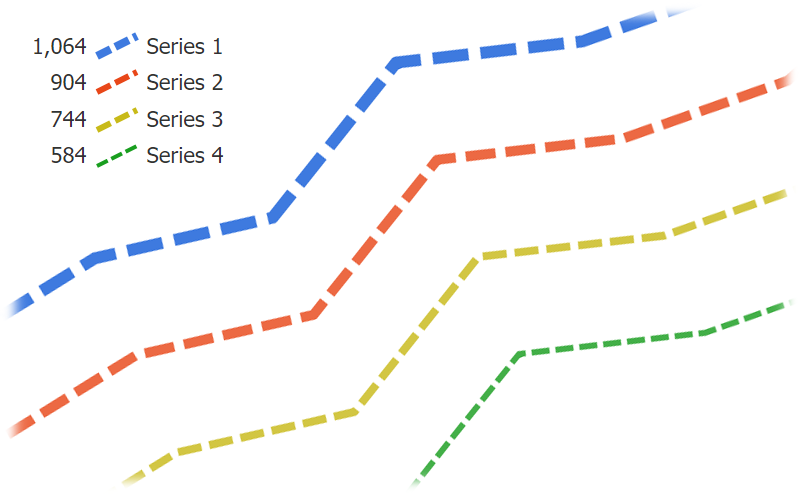Legend line icons are enhanced with the addition of dash styles and represent line series of varying widths and dash styles more accurately by scaling both attributes on the legend icon.