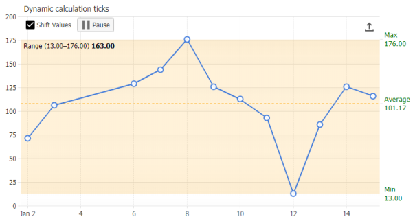 Dynamically updates chart data in real-time. Dynamic axis ticks display calculations that stay in sync.
