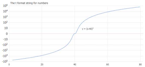 Negative and positive values on a logarithmic scale with t (ten) formatting.