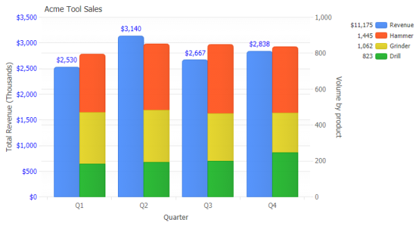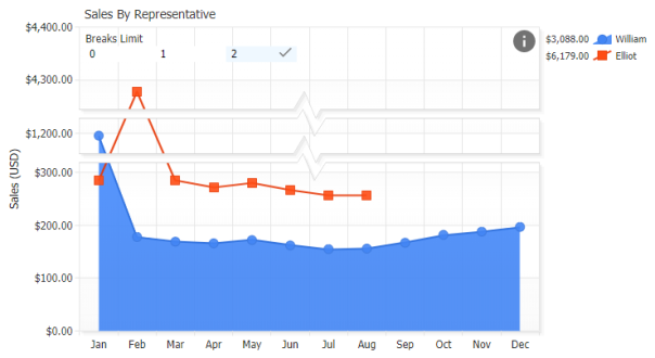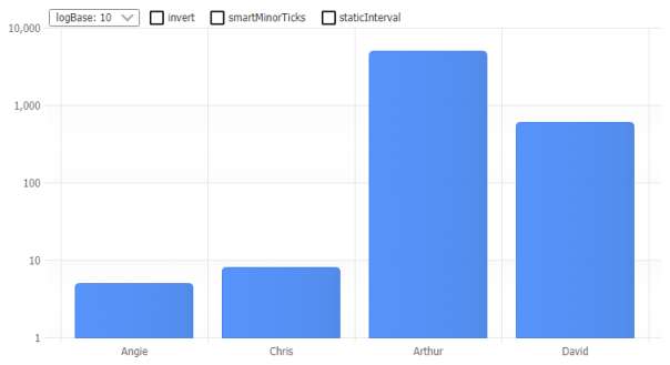 JSCharting has advanced axis support which automatically tunes, labels and animates axis transitions and scales. Axes may be duplicated and customized to show different units and complete support for multiple axis is standard. Customization and control is also offered for major and minor tick styling and interval settings. Advanced culture support ensures that your data displays correctly and is formatted correctly in different browsers, countries and cultures.
