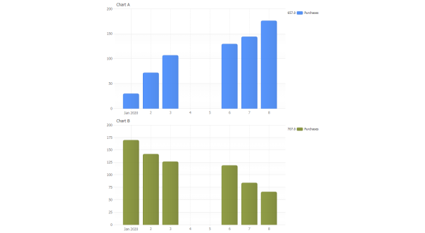 An advanced automatic layout system ensures chart elements are positioned ideally utilizing simple position settings. Positions can also be tweaked with offset values to refine a custom visual balance complementary to your site design objectives.