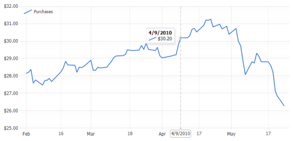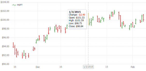 JSCharting provides advanced financial stock chart support including candlestick, open-high-low-close (OHLC), volume, multiple chart areas and technical indicators. Advanced pan and zoom functionality, including a google finance like navigator interface are also supported