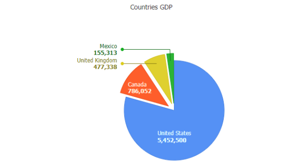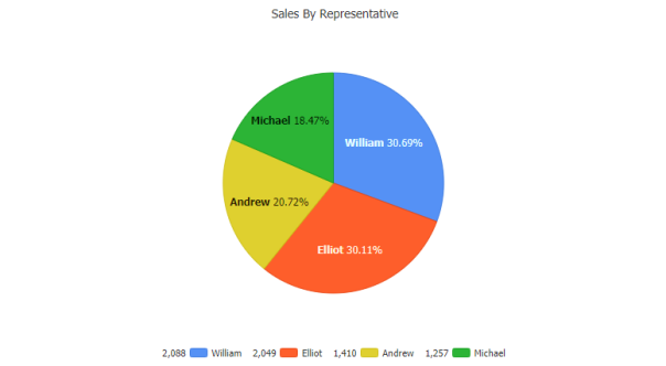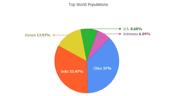 Pie charts are a popular JavaScript chart type offering proportional segmented values relative to the whole. JSCharting supports advanced pie features including label callouts, donut charts, HTML tooltips and stacked or nested pie support to quickly and efficiently compare data across different periods or groupings. Create a simple pie chart with no CSS settings required using resolution independent SVG and HTML5. JavaScript pie charts show your data points, custom styling (including background colors), start angle, border width and more. The pie chart data visualization requires no server-side code and accepts JSON configuration and data input with no plugins (not even jQuery) required.