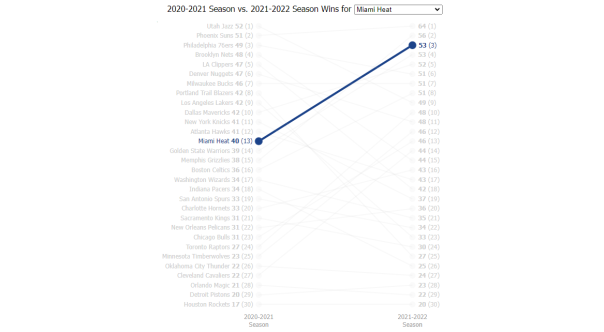 Slope chart that ranks items on both sides, uses 2-way dropdown selection, and first and last point labels.